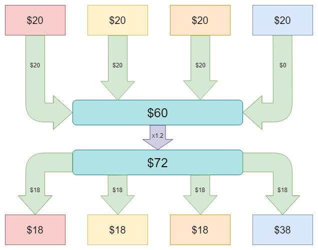 Stel je nu voor dat jij de rol van Homo economicus speelt, het rolmodel van de gangbare economen. Dan zal je voorspellen dat de andere deelnemers niet gaan inleggen in de gezamenlijke pot zodra zij zich realiseren dat dat verlies kan opleveren. Deze spelers zullen hun aandeel bij zich houden en toekijken of andere sukkels de pot zullen vullen.